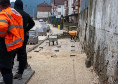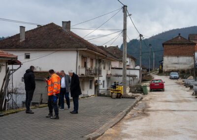 Градоначалникот м-р Жарко Ристески заедно со стручни лица од општината извршија теренска посета на крак од ул.„Јане Сандански“, каде моментално се изведуваат градежни работи на реконструкција на улицата и изградба на тротоари.